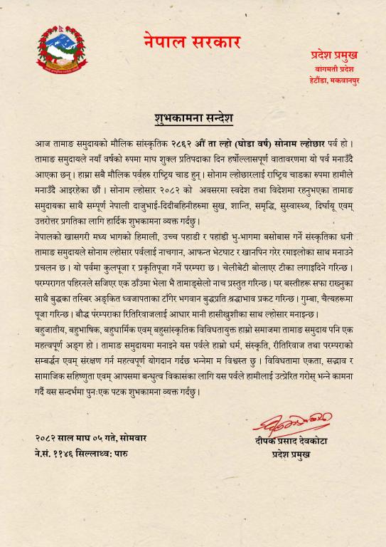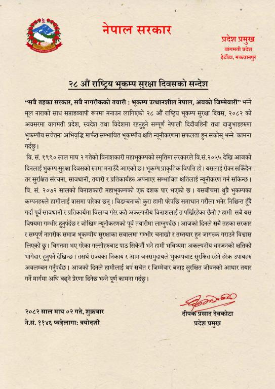 माननीय प्रदेश प्रमुख यादवचन्द्र शर्माज्यूले बागमती प्रदेश सभामा गर्नुभएको सम्बोधन ।