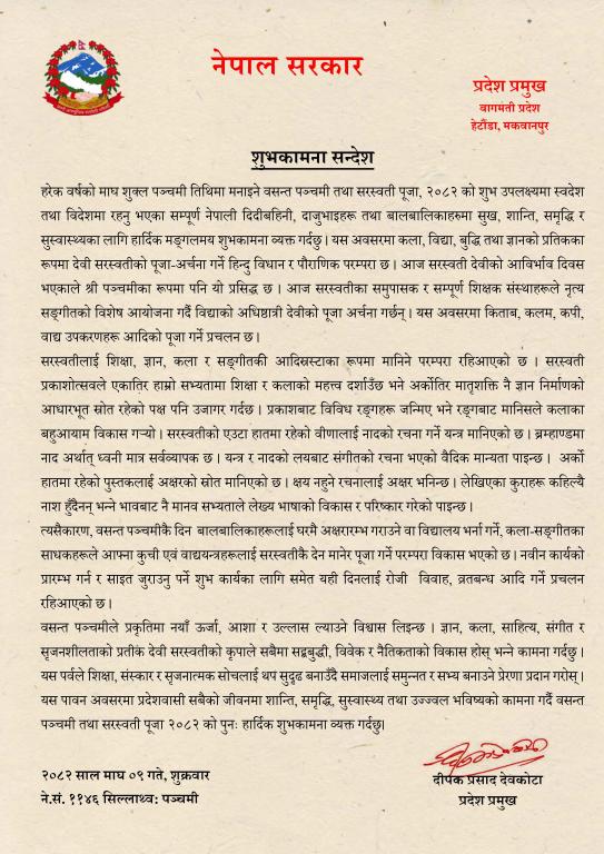 माननीय प्रदेश प्रमुख यादवचन्द्र शर्माज्यूले बागमती प्रदेश सभामा गर्नुभएको सम्बोधन ।