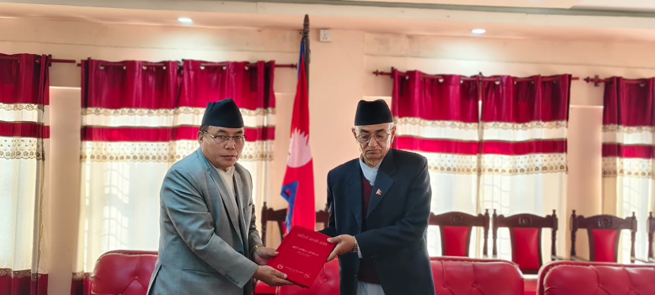 २०८२।०२।२६माननीय प्रदेश प्रमुख श्री दिपक प्रसाद देवकोटाज्यूसमक्ष राष्ट्रिय प्राकृतिक स्रोत तथा वित्त आयोगका मा. कार्यबाहक अध्यक्ष श्री जुद्ध बहादुर गुरुङज्यूले राष्ट्रिय प्राकृतिक स्रोत तथा वित्त आयोग छैटौं वार्षिक प्रतिवेदन, २०८१ पेश गर्नुहुँदै ।