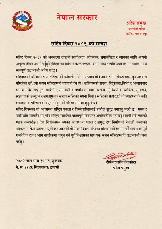 माननीय प्रदेश प्रमुख यादवचन्द्र शर्माज्यूले बागमती प्रदेश सभामा गर्नुभएको सम्बोधन ।