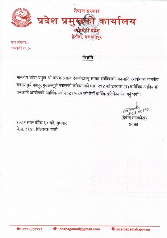 माननीय प्रदेश प्रमुख यादवचन्द्र शर्माज्यूले बागमती प्रदेश सभामा गर्नुभएको सम्बोधन ।