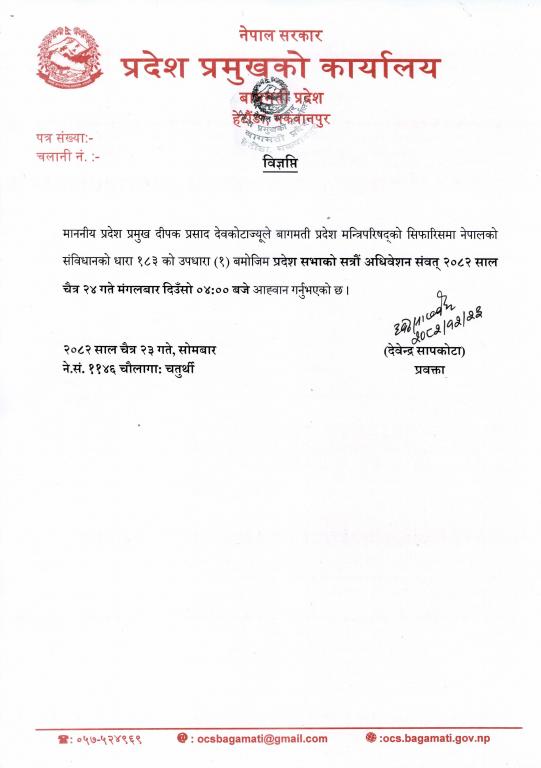 प्रदेश सभाको सत्रौं अधिवेशन आह्‍वान ।