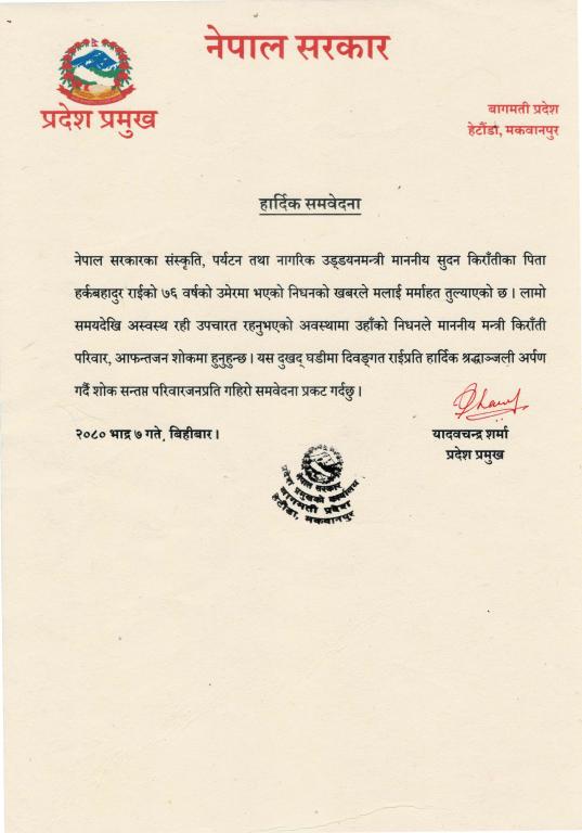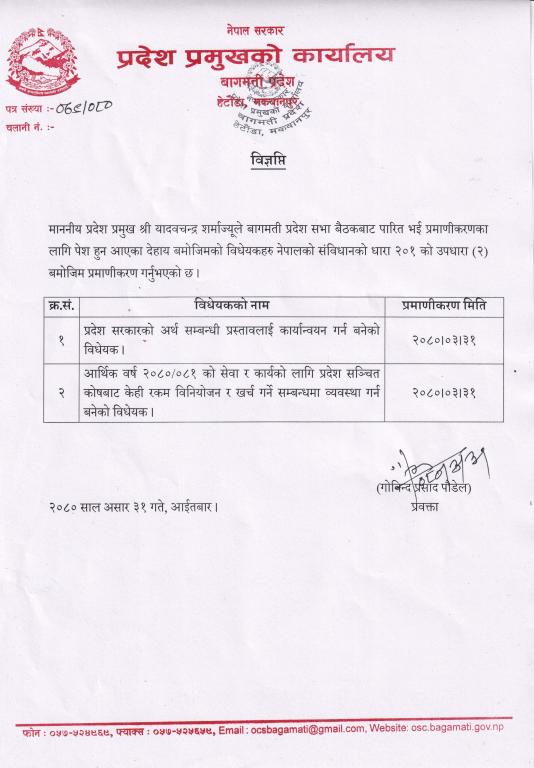 माननीय प्रदेश प्रमुख यादवचन्द्र शर्माज्यूले बागमती प्रदेश सभामा गर्नुभएको सम्बोधन ।